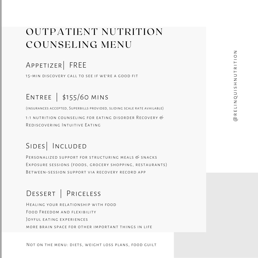 If the cycle of dieting, weight fluctuations, and deprivation hasn't served you, let's step off the merry-go-round and embrace a new path. By honoring your body's cues and finding harmony within, you will not only experience relief from food rules, but also discover a life that is free from deprivation, shame, and the negative impacts of dieting.